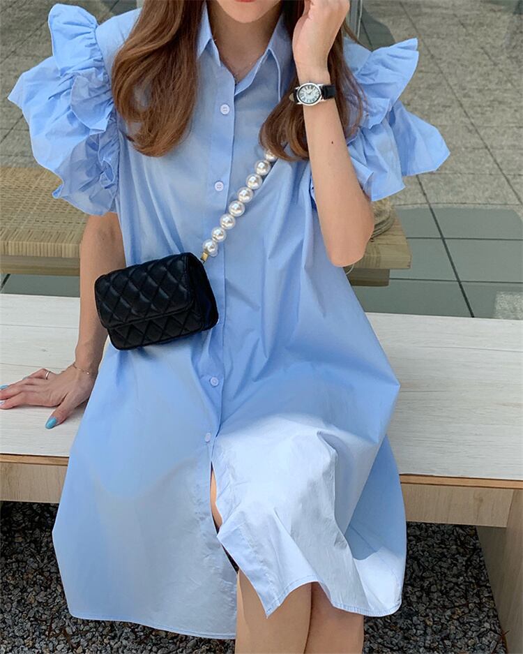 優雅女性らしい スリム ギャザリング カジュアル シャツワンピ パフスリーブ ゆったりする