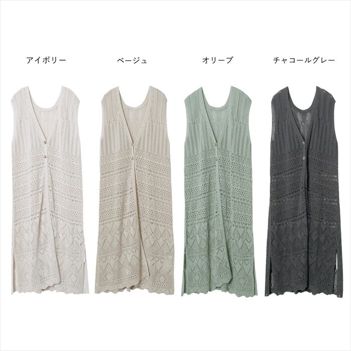 繊細な模様の透かし編み前後2WAYロングジレが登場。