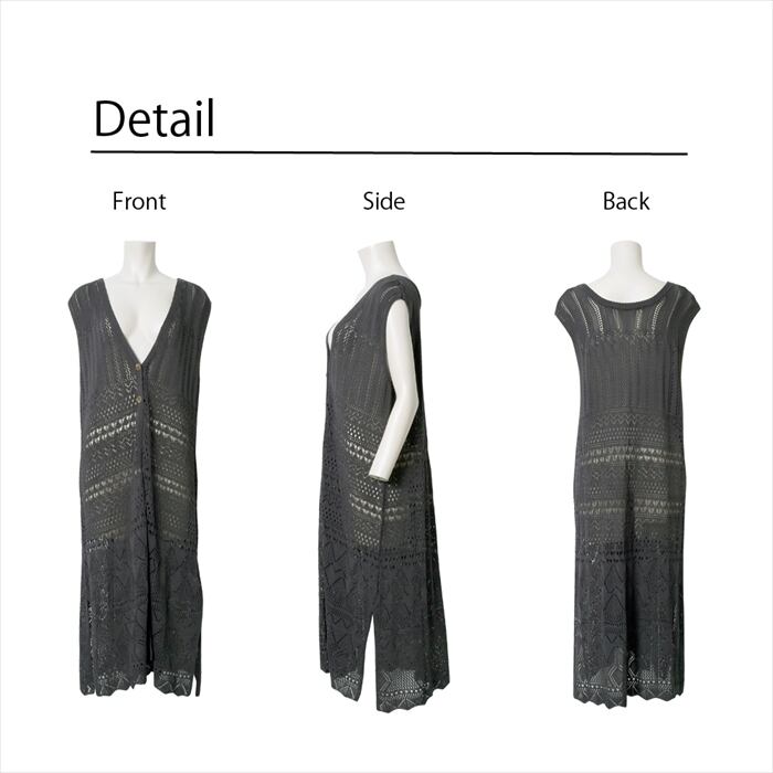 【2022新作商品♪】前後2WAY透かし編みロングジレ