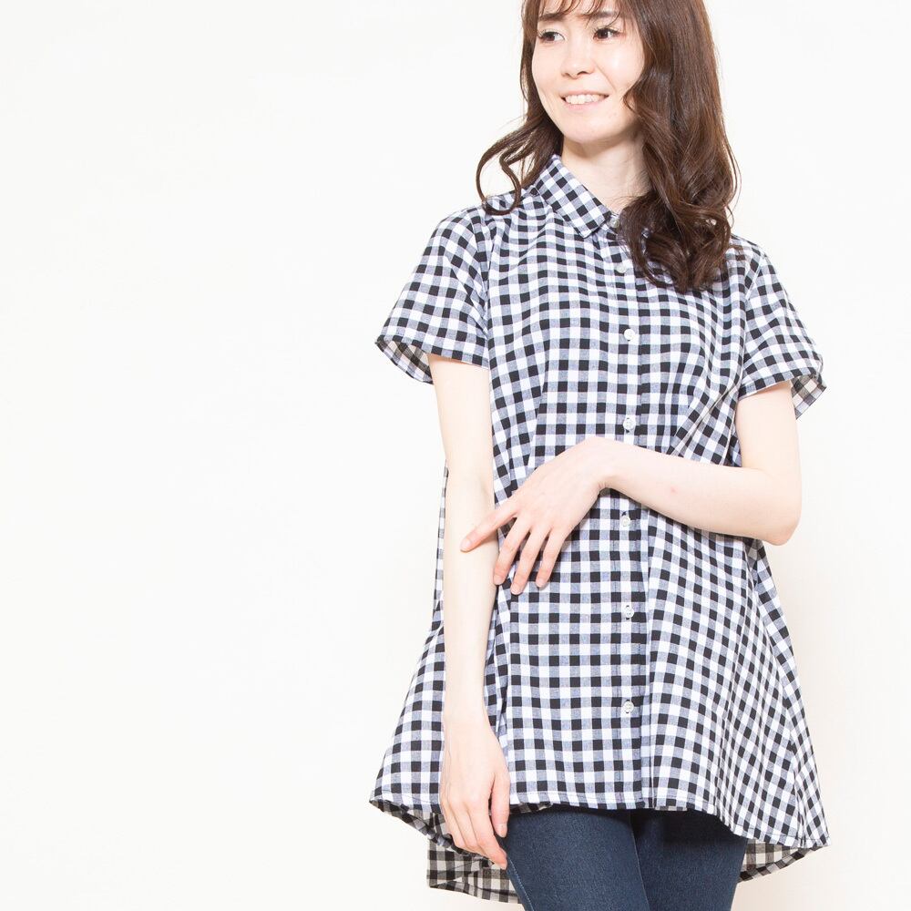 【2022夏物新作】【大きいサイズ有り】サークルフレアーシャツチュニックワンピース