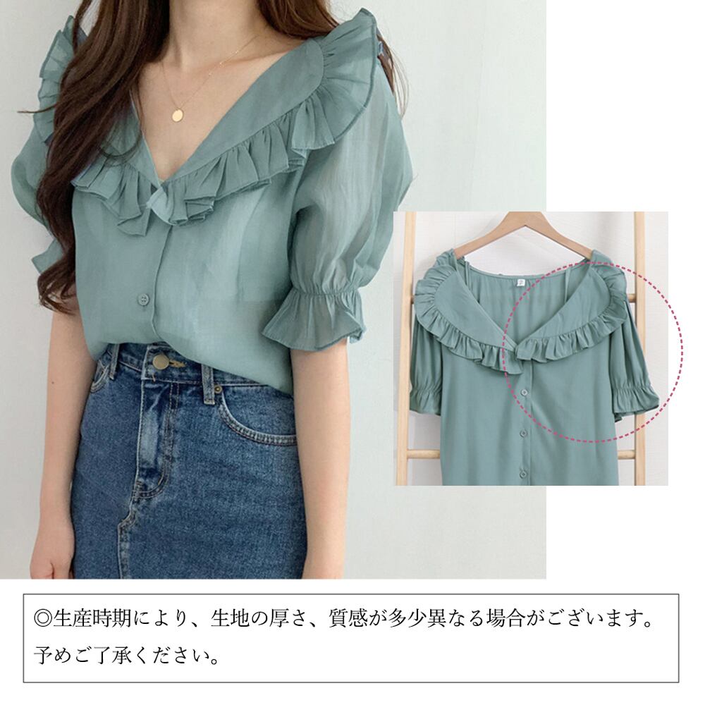 シャツブラウス レディース フリルブラウス 半袖 通勤 可愛い 大人こなれ感 薄手 無地 OL おしゃれ フェミニン韓国