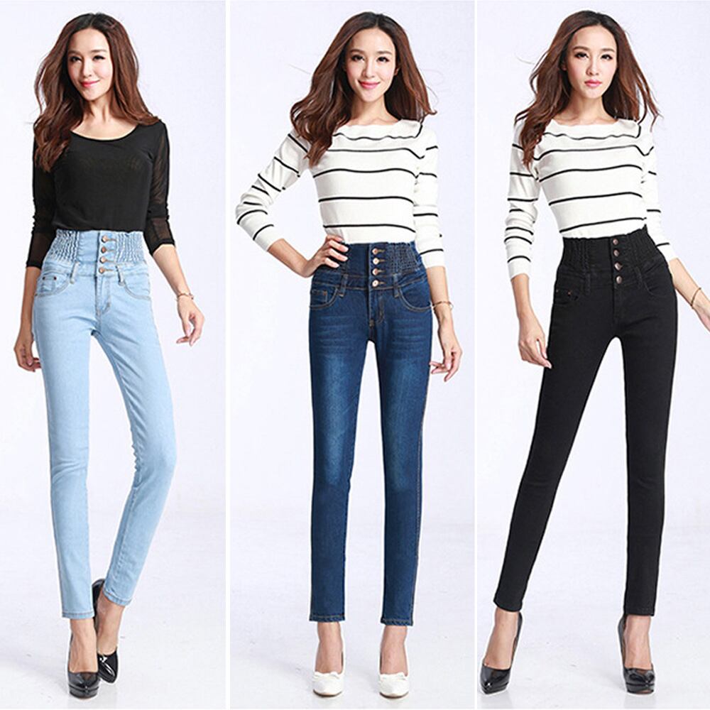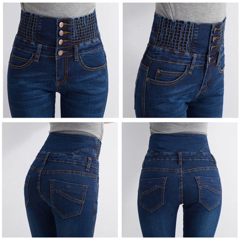 ハイウエスト デニムパンツ 美脚 ストレッチ スキニー ジーンズ ジーパン