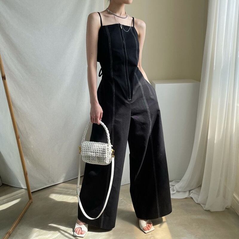 新作 カジュアル レトロジッパー chic ゆったり ロングパンツ パンツ丈 夏 オールインワン/サロペット