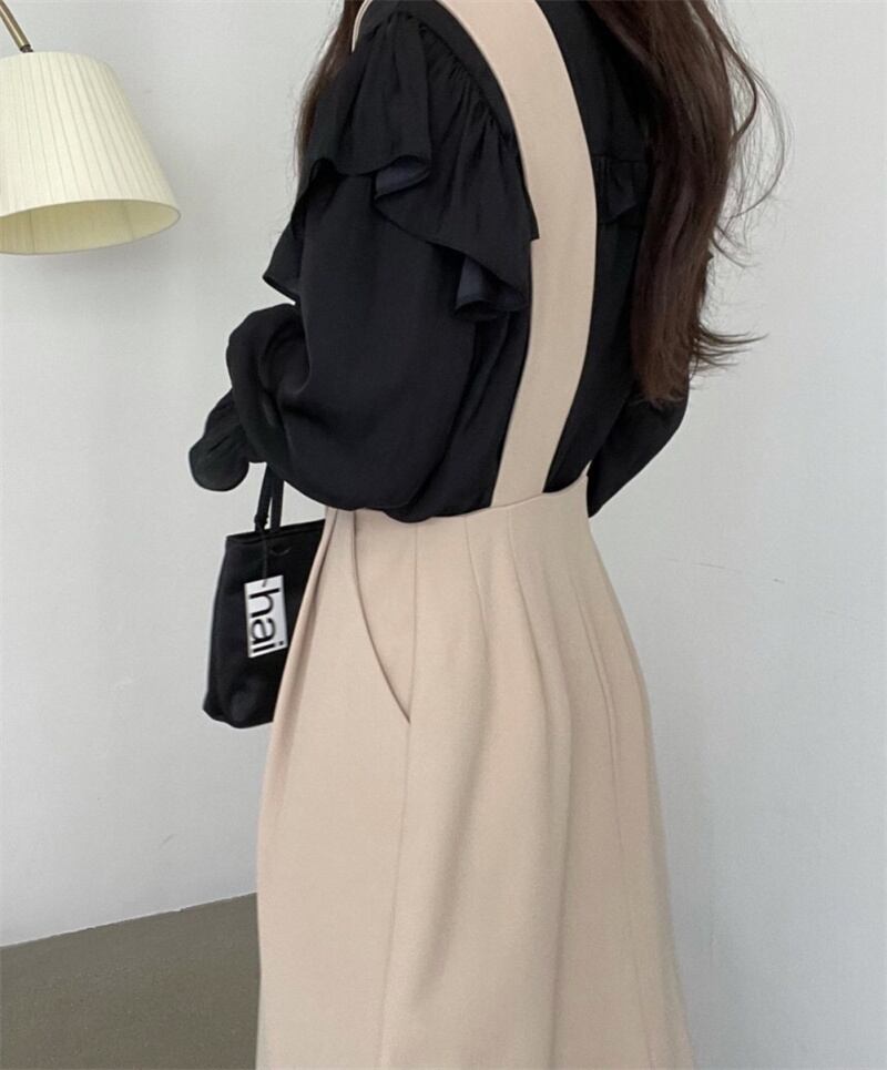 秋INS 新作 スリット 不規則 長袖 ラウンドネック ロングワンピース切り替え カジュアルセットアップ