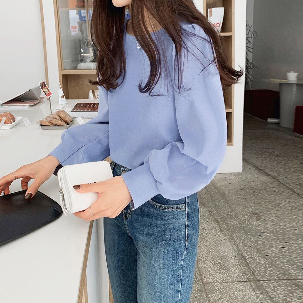 トップス クルーネック長袖シャツブラウス