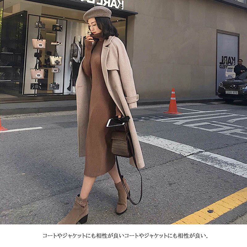 2022新作 レディース ワンピース ロング丈 ニット ハイネック タートルネック 長袖 大人っぽい