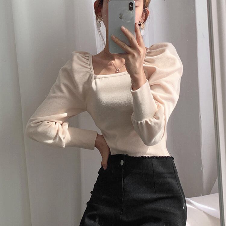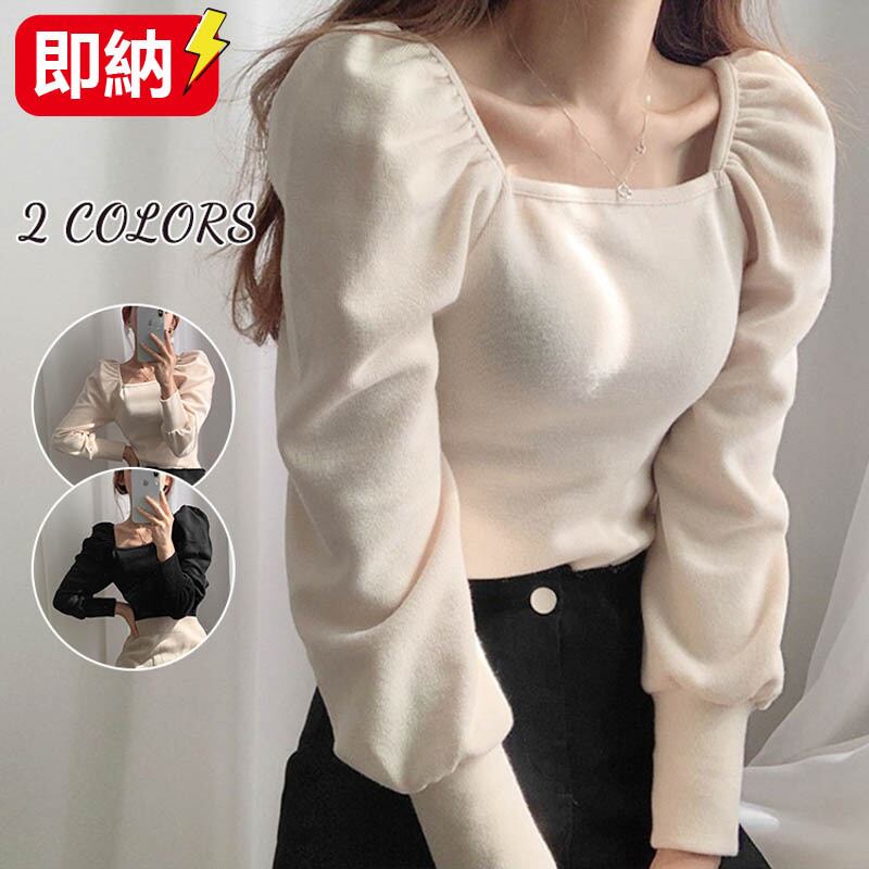Women】韓国ファッション 気質 おしゃれな 長袖 ニット スクエアネック 百掛け レトロ トップス