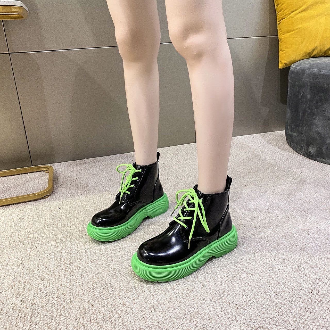 秋冬新作 レディース 靴 ショートブーツ 厚底 boots エナメル感