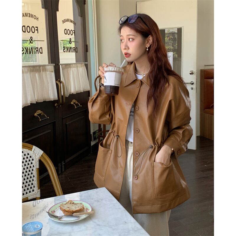 レトロ 合わせやすい 長袖 ゆったり カジュアル レザーコート