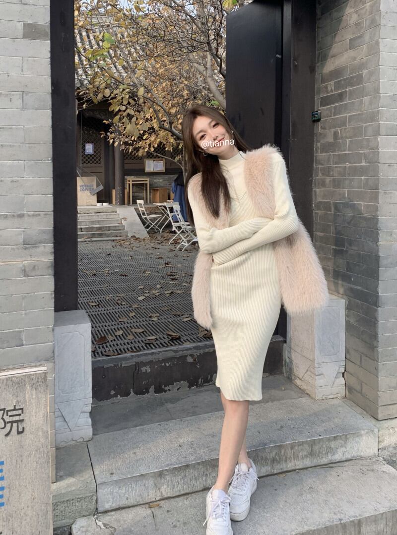 秋INS 新作 好感度UP レディース エコファー ふわふわ ファーベスト/ニットワンピース