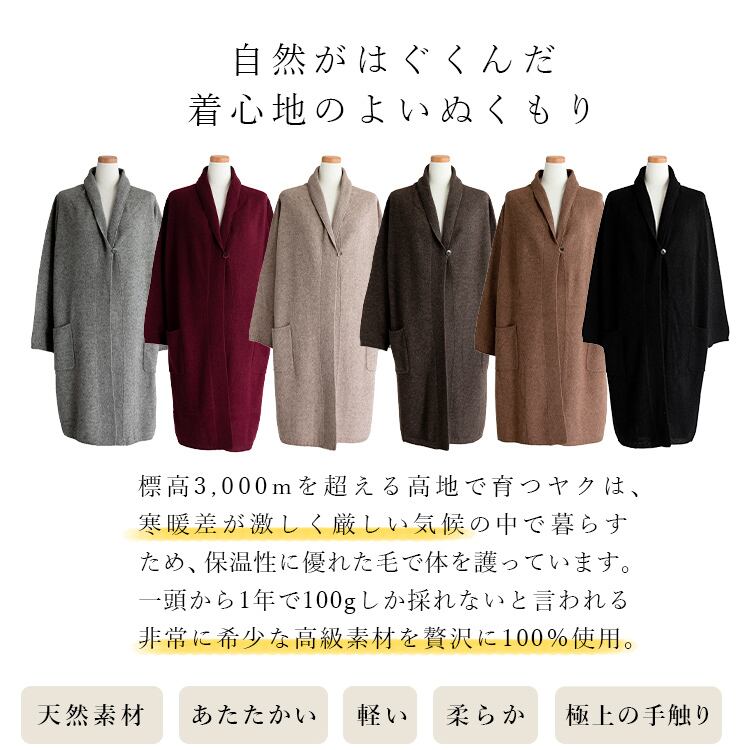 高級素材ヤク100%使用 ルーズシルエットカーディガン