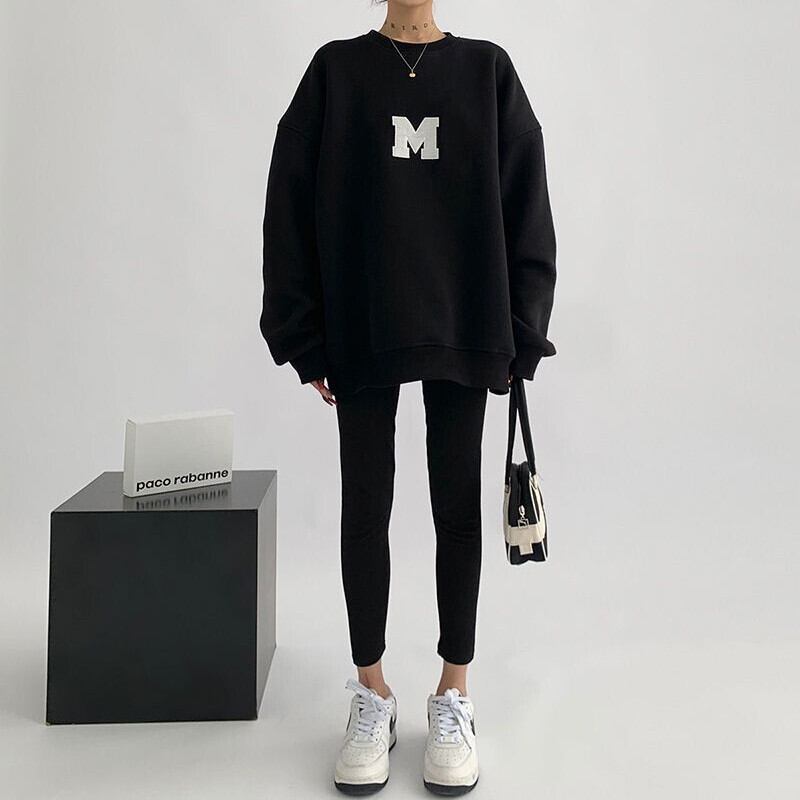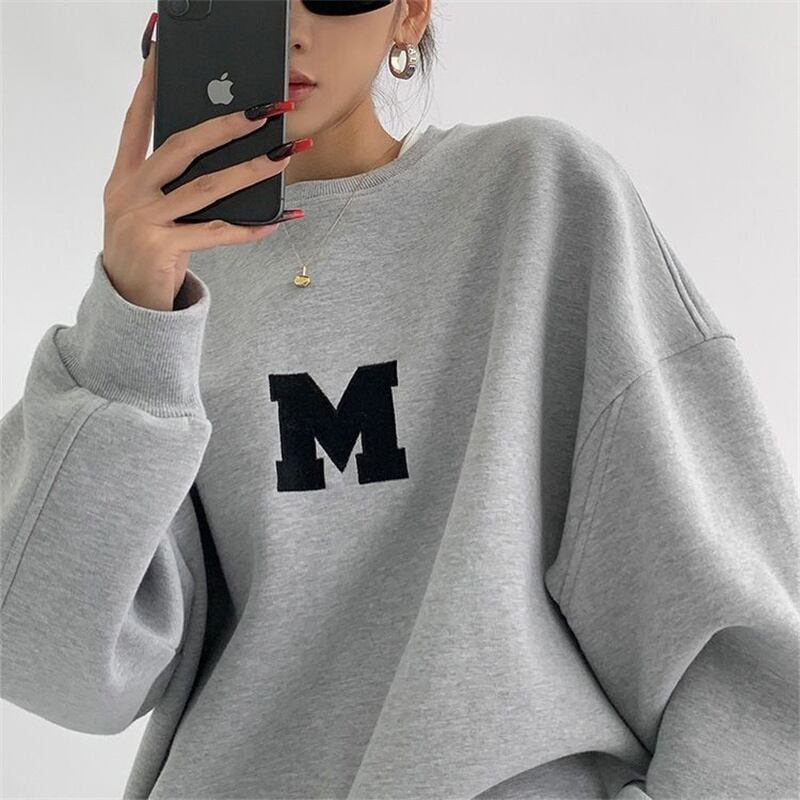 秋冬INS 新作 裏起毛 長袖 アルファベット プルオーバー 裏起毛 切り替え トレーナー
